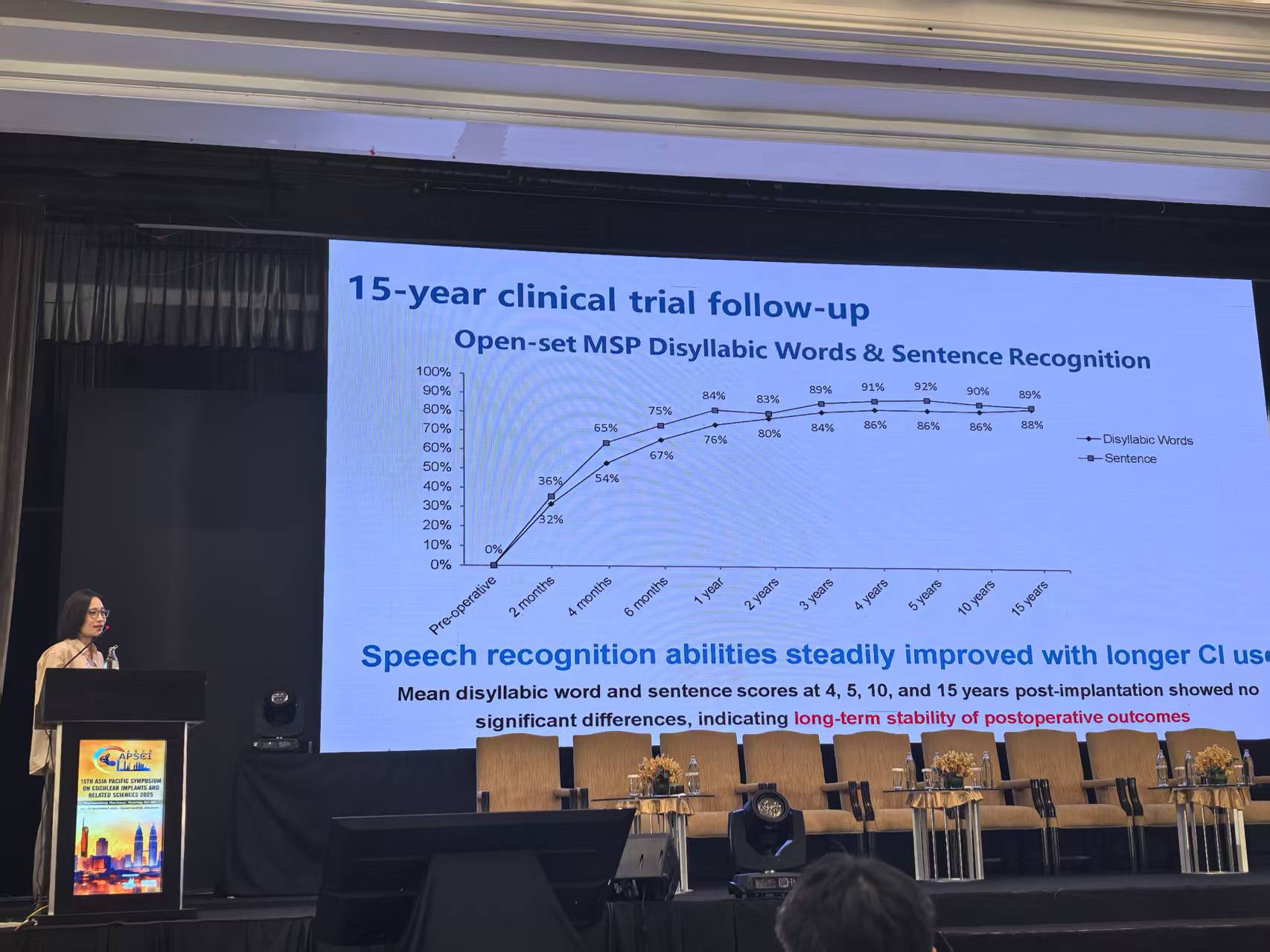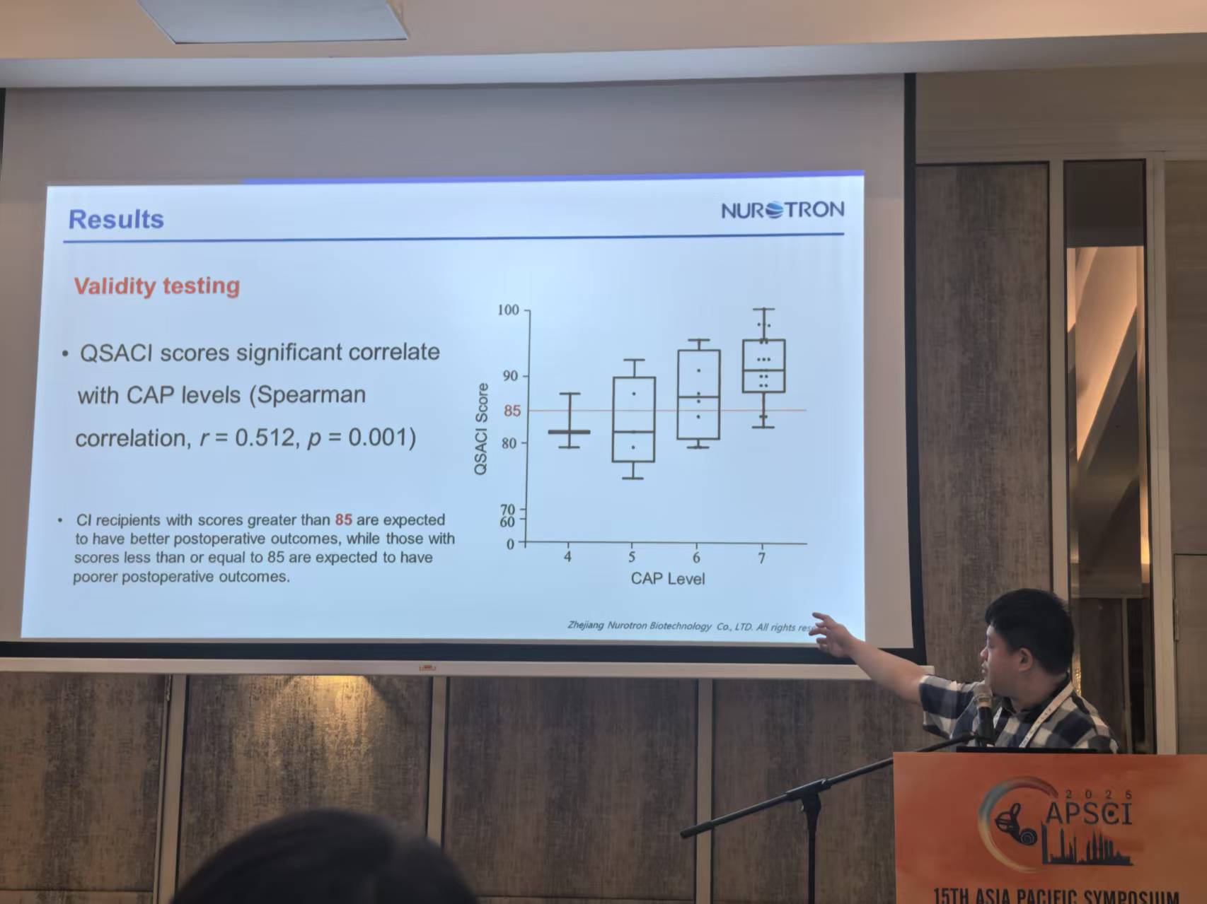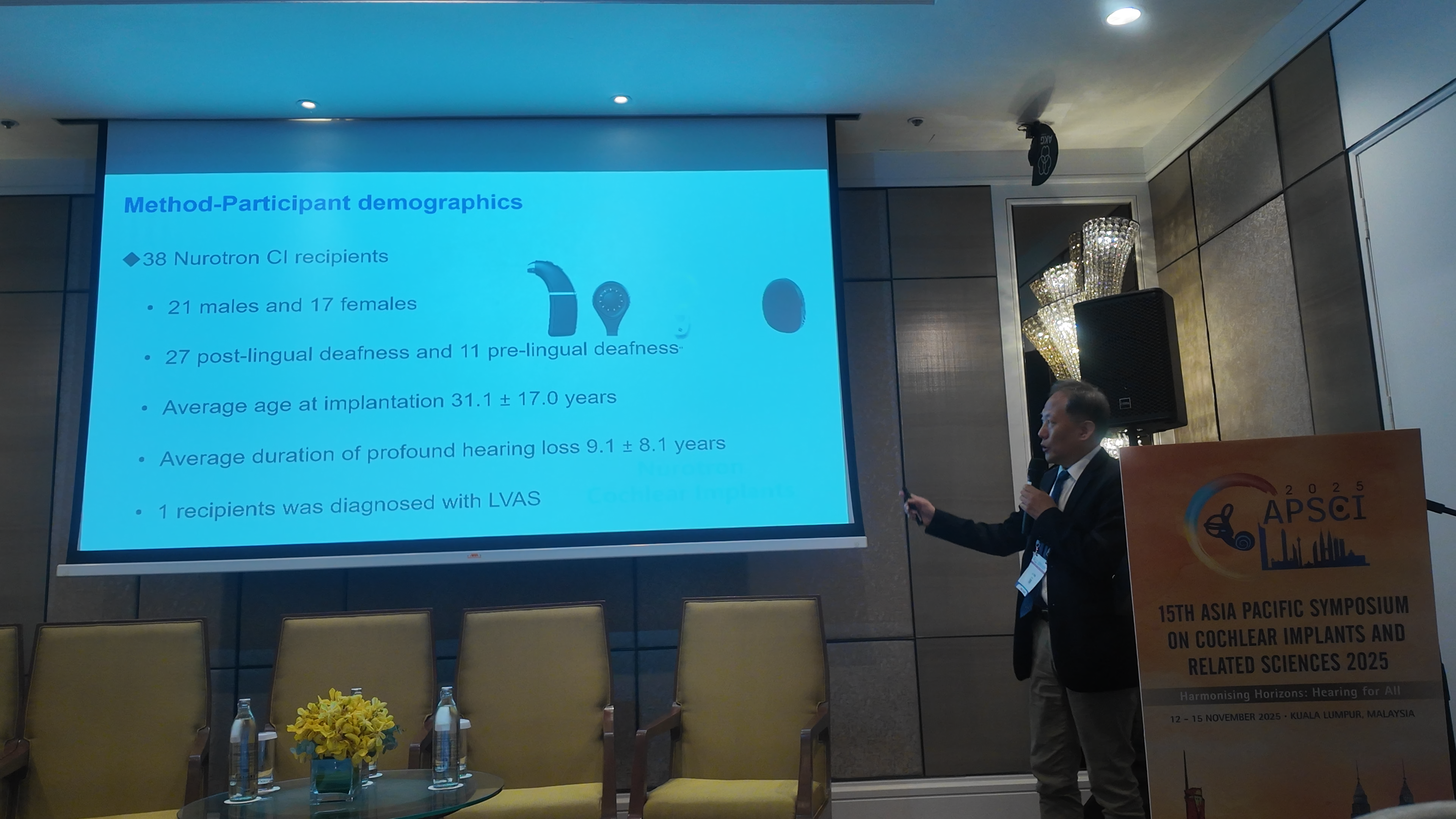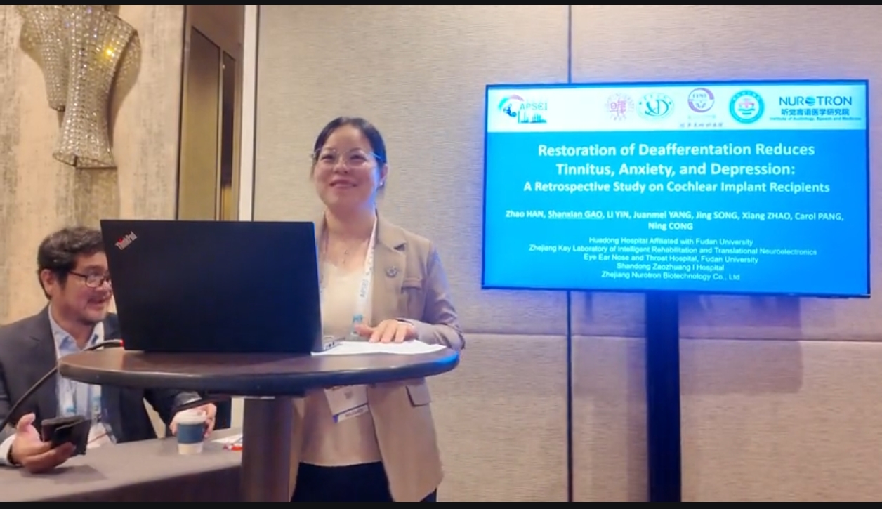 Prof. Haiqiao DU of The Sixth Medical Center of PLA General Hospital presented a 15-year follow-up study, ” A 15-year in-depth follow-up of post-lingual hearing loss patients with Chinese domestic cochlear implants” providing detailed data to demonstrate the long-term safety, effectiveness, and stability of the Nurotron “Morning Star” system.